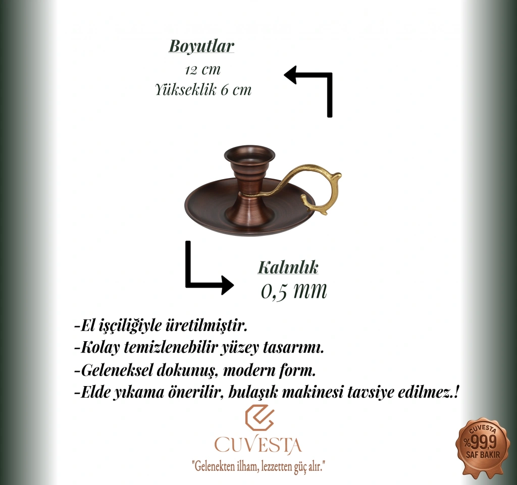 El işçiliğiyle üretilen bu özel CUVESTA bakır şamdan, geleneksel metal işçiliğini modern formla birleştirir.