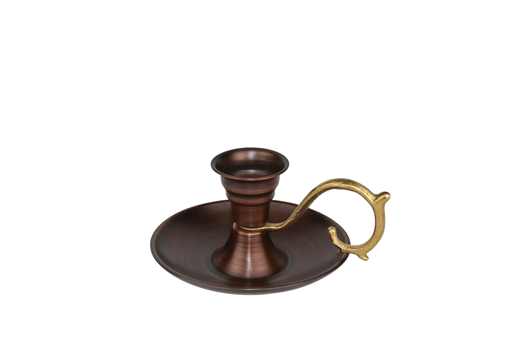 Mum ışığının bakır yüzeyde yarattığı yumuşak yansımalar, bulunduğu ortama sıcaklık ve zarafet katar.