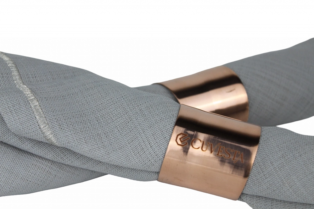 Bakırın doğal parlaklığı, zarif beyaz ve yeşil tonlarla birleşerek CUVESTA estetiğini yansıtır.