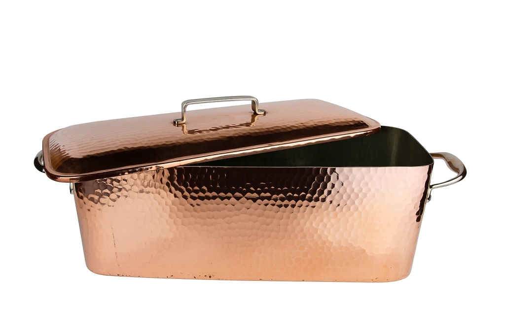 El işçiliğiyle üretilmiş bu özel bakır balık kazanı, geleneksel ustalığı modern tasarımla birleştirir.