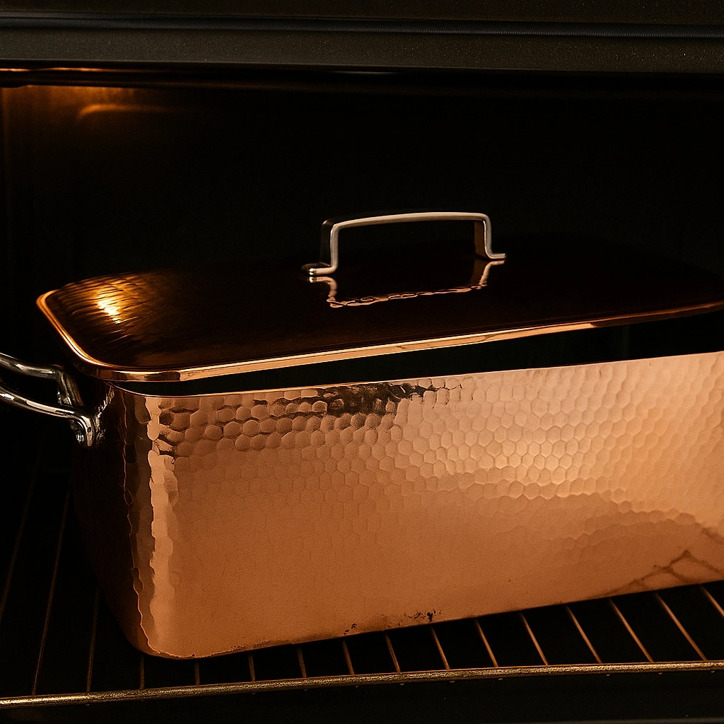 Yüksek ısı iletkenliği sayesinde yemeklerinizi eşit şekilde pişirir ve Uzun ömürlü kullanımıyla mutfağınıza değer katar. Bakırın doğal parlaklığı, zarif beyaz ve yeşil tonlarla birleşerek CUVESTA estetiğini yansıtır.