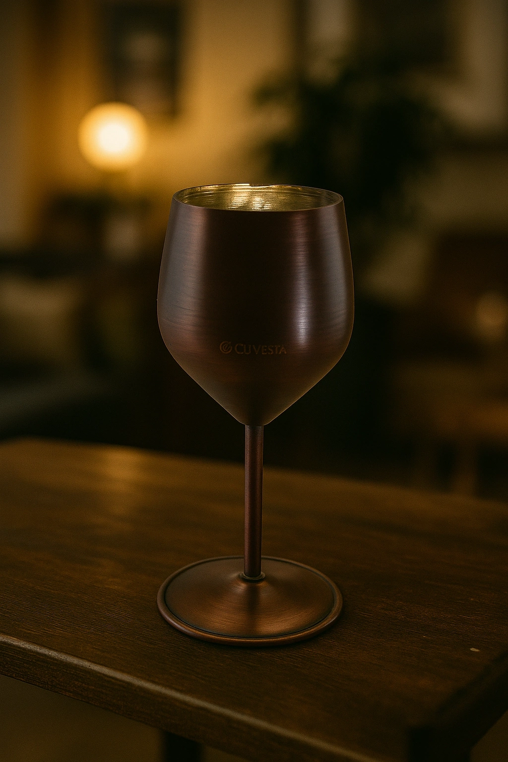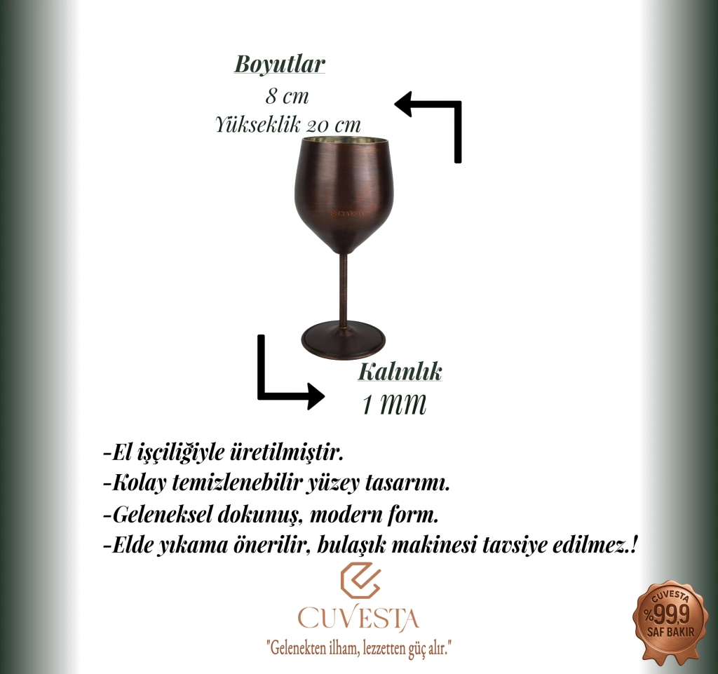 El işçiliğiyle dövülerek şekillendirilen bu özel CUVESTA bakır kokteyl bardağı, geleneksel ustalığın modern tasarımla buluştuğu zarif bir eserdir.