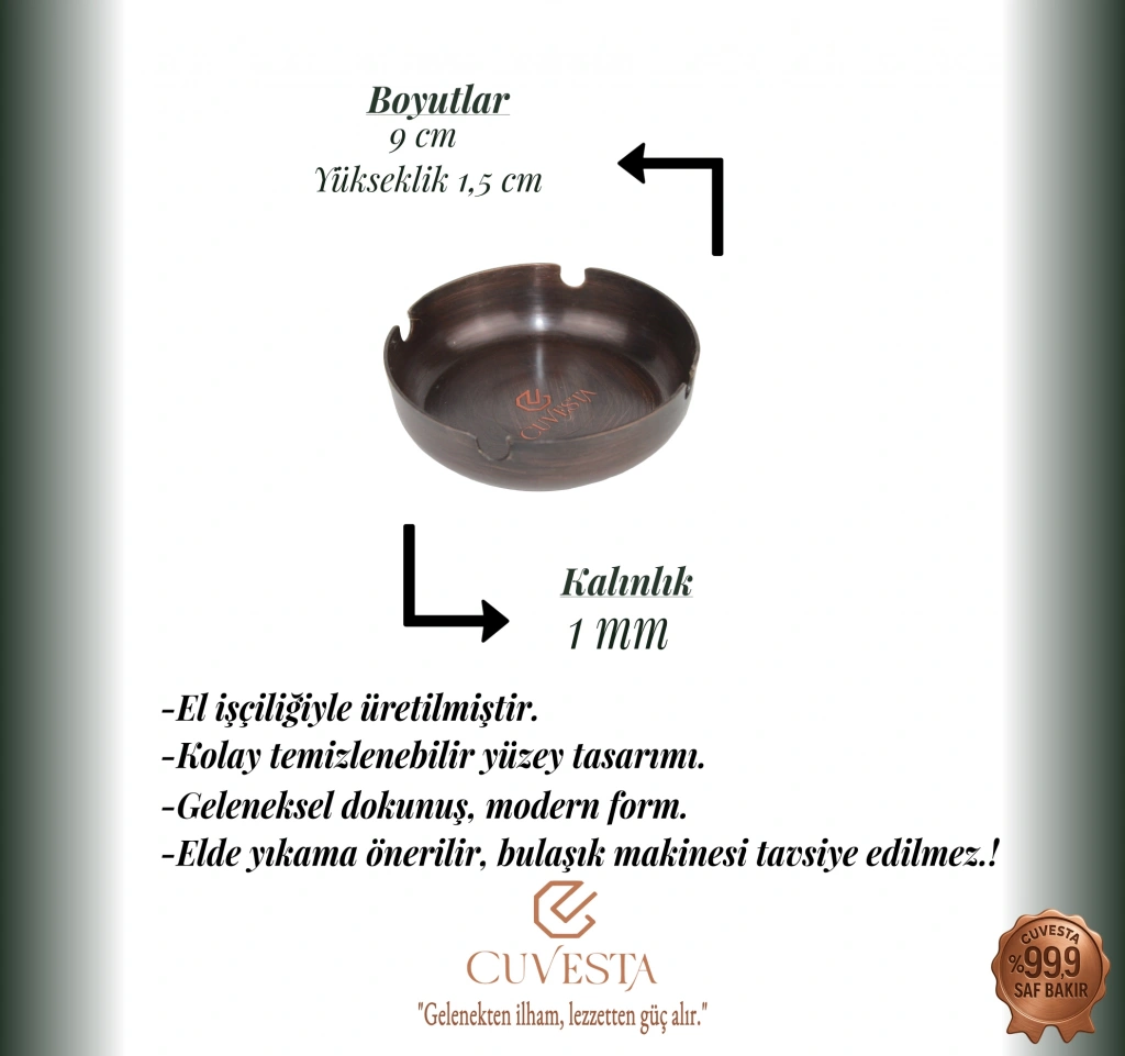 Cuvesta Modern El Yapımı Dekoratif Bakır Küllük 9x1.5cm