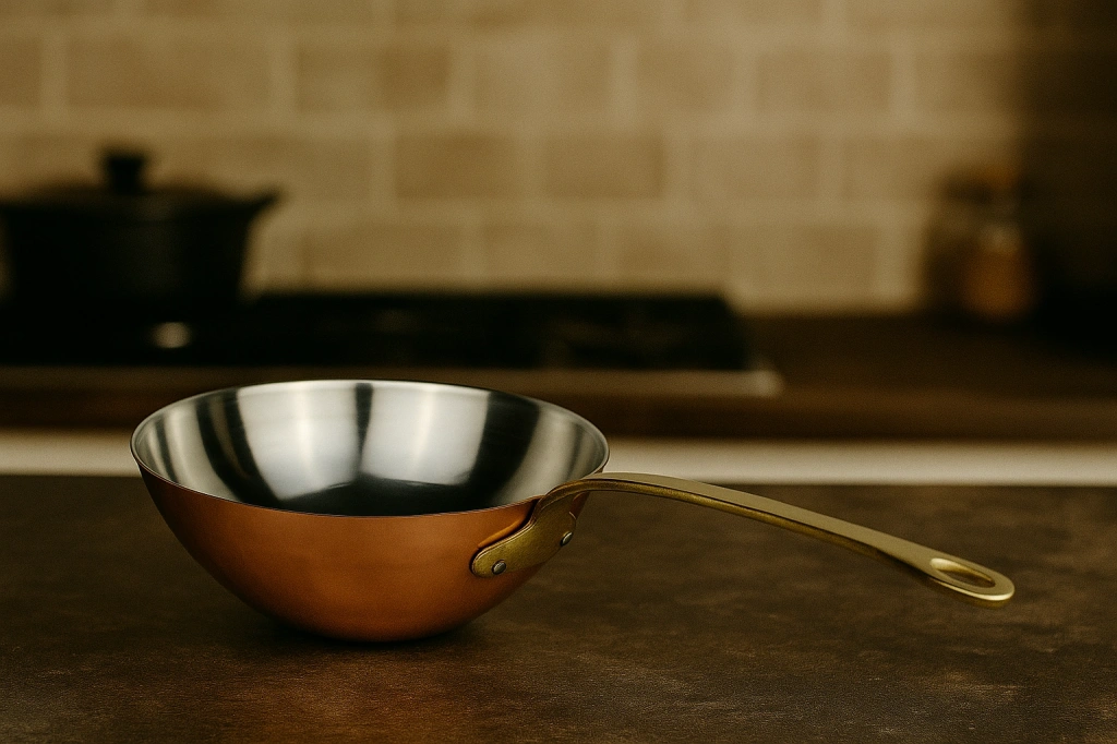 El işçiliğiyle üretilmiş bu özel bakır sote ve sos tavası, geleneksel ustalığı modern tasarımla birleştirir.