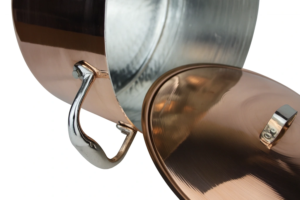 El işçiliğiyle üretilmiş bu özel bakır tencere, geleneksel ustalığı modern tasarımla birleştirir.