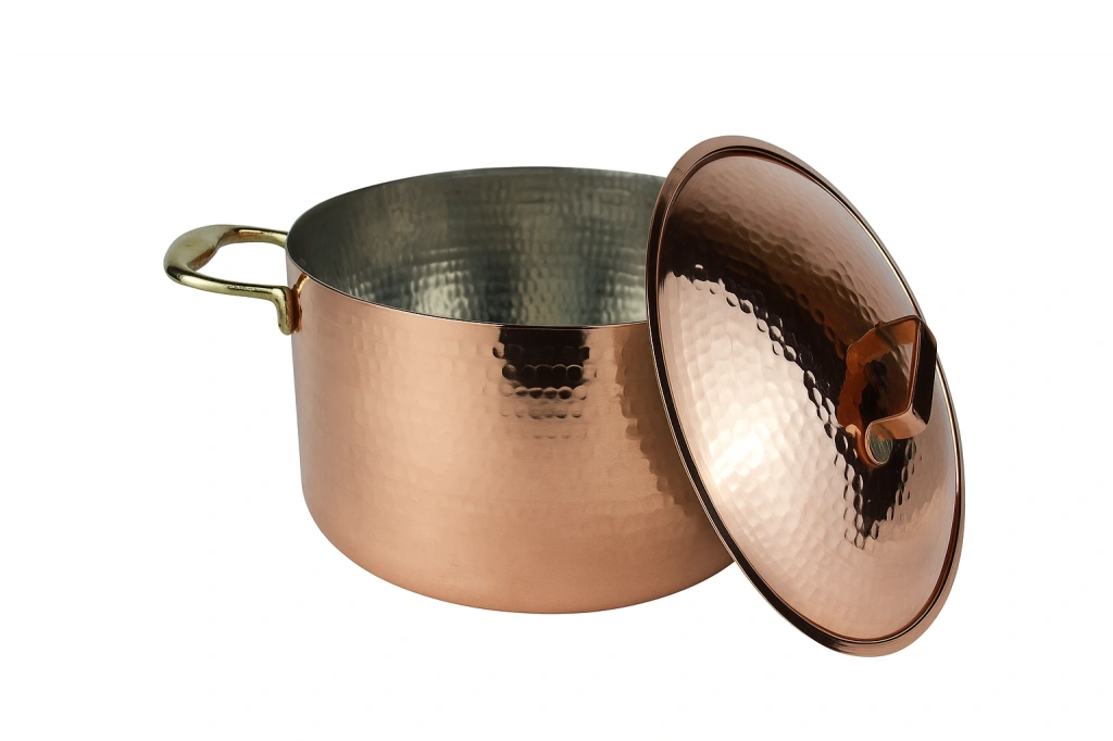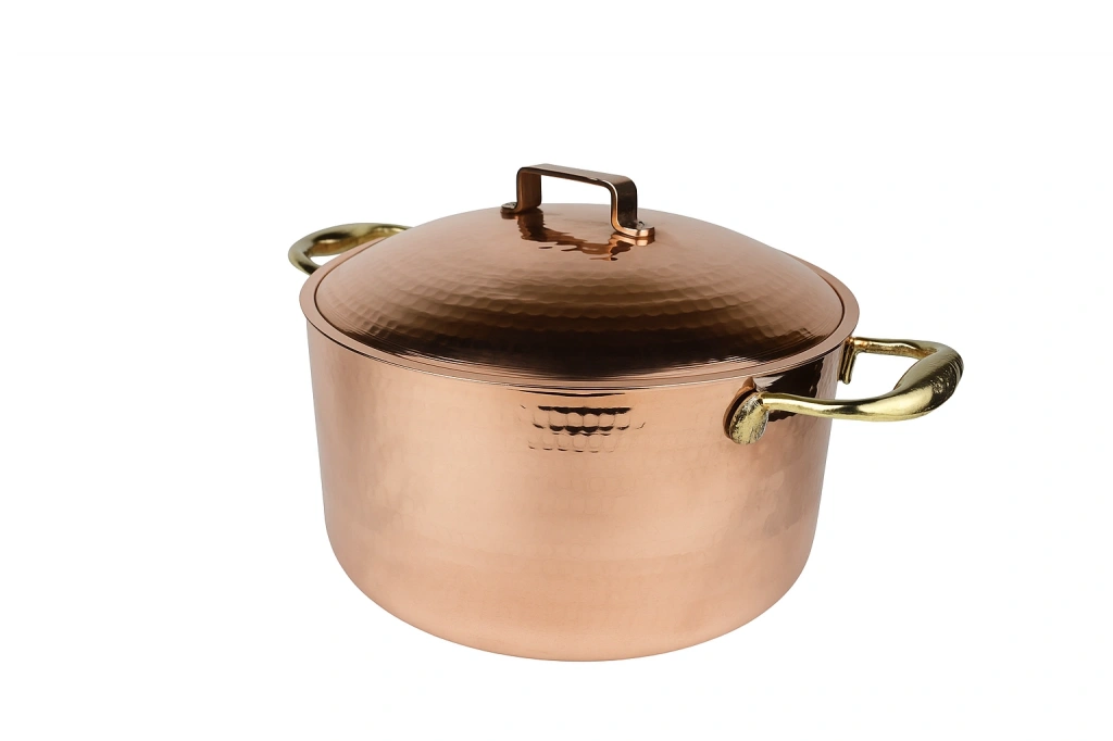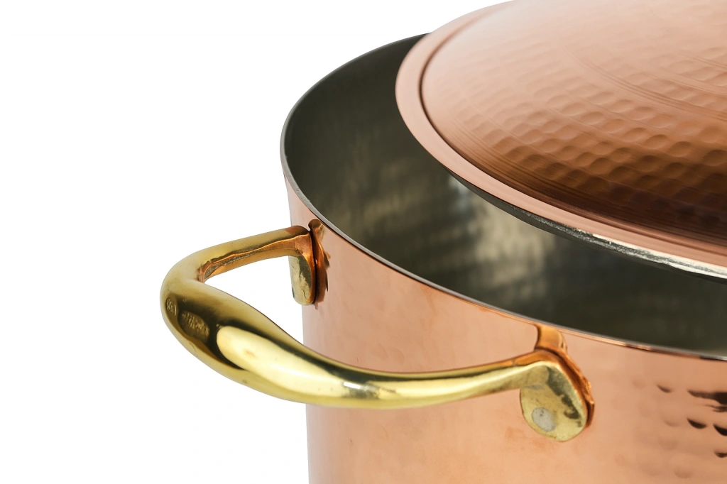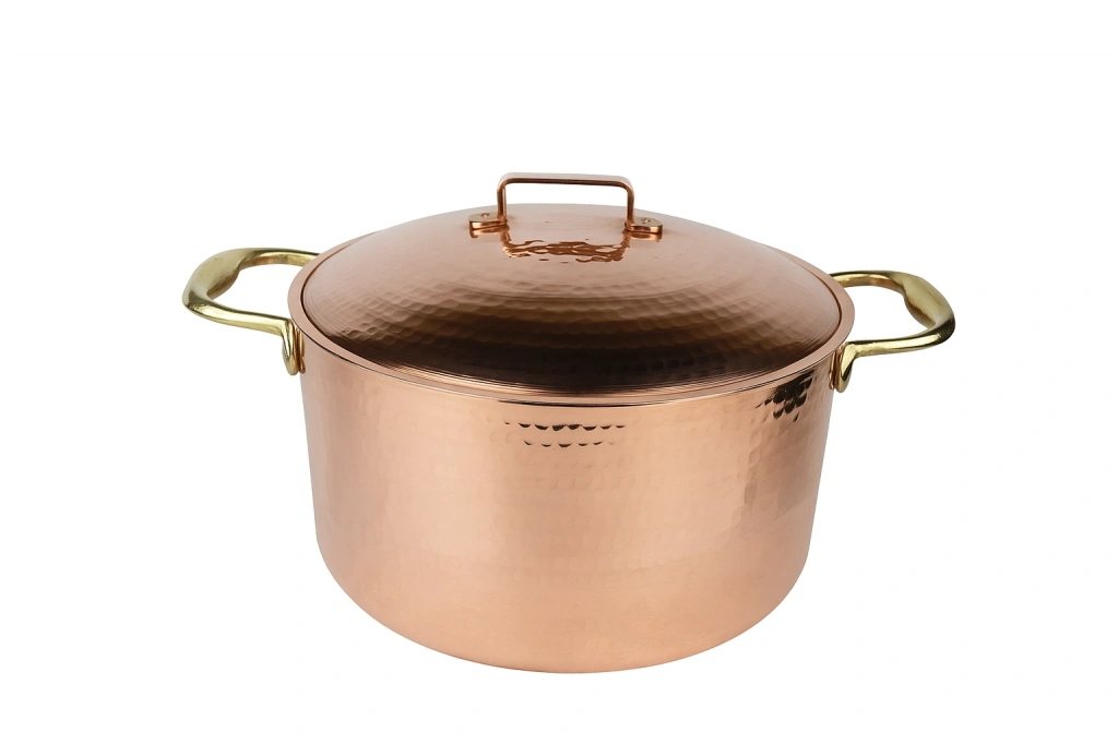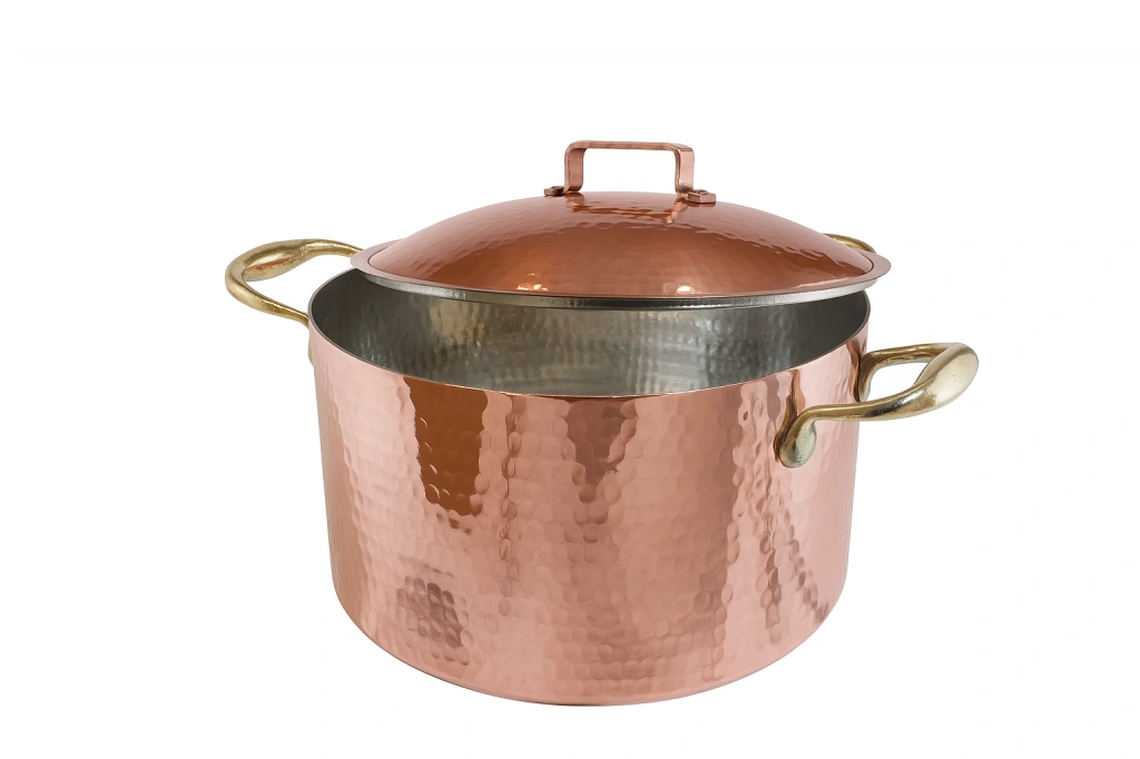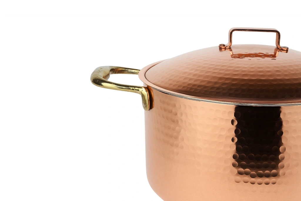 El işçiliğiyle üretilmiş bu özel bakır tencere, geleneksel ustalığı modern tasarımla birleştirir.