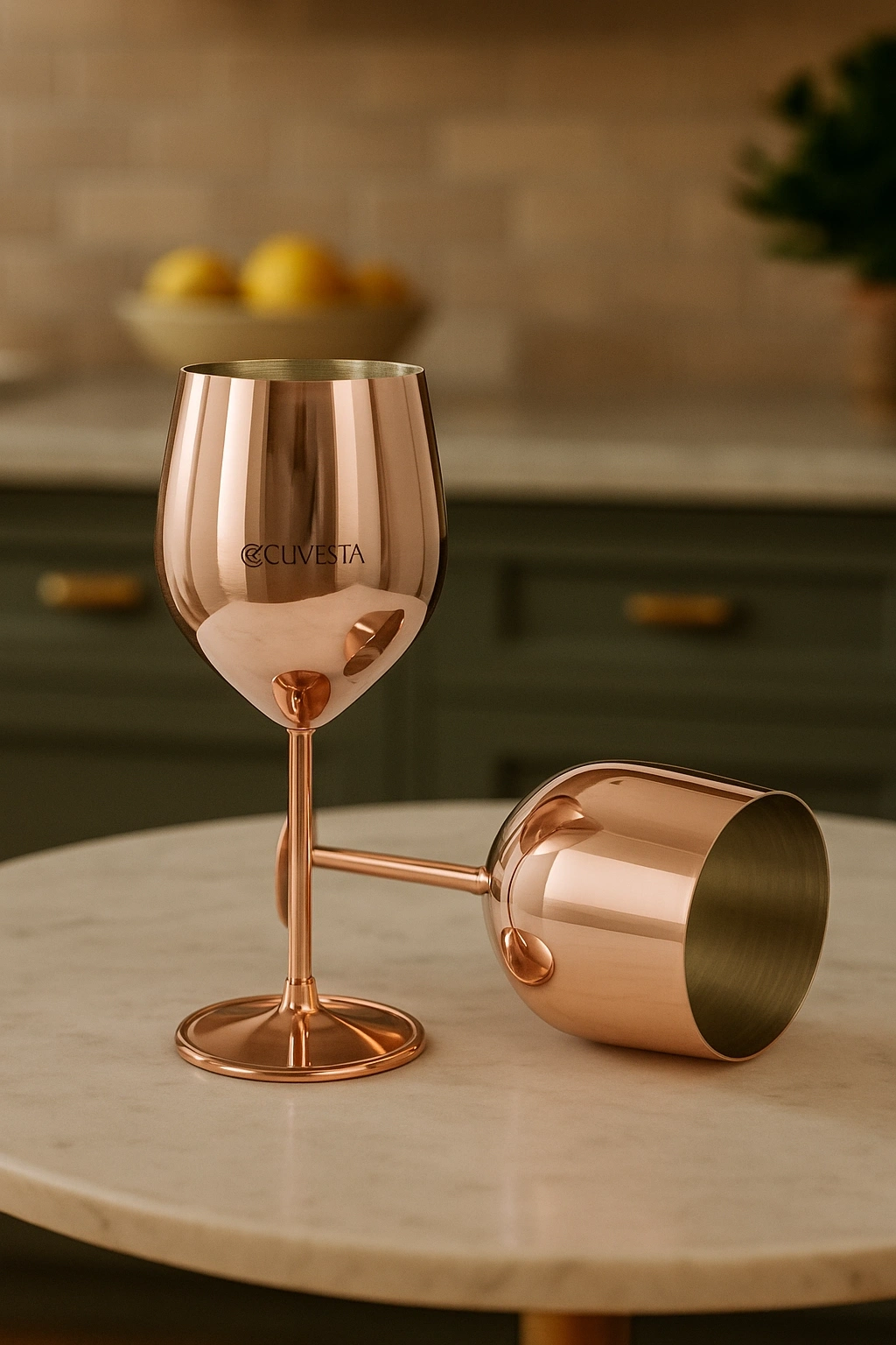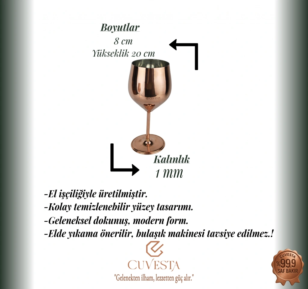 El işçiliğiyle dövülerek şekillendirilen bu özel CUVESTA bakır kokteyl bardağı, geleneksel ustalığın modern tasarımla buluştuğu zarif bir eserdir.